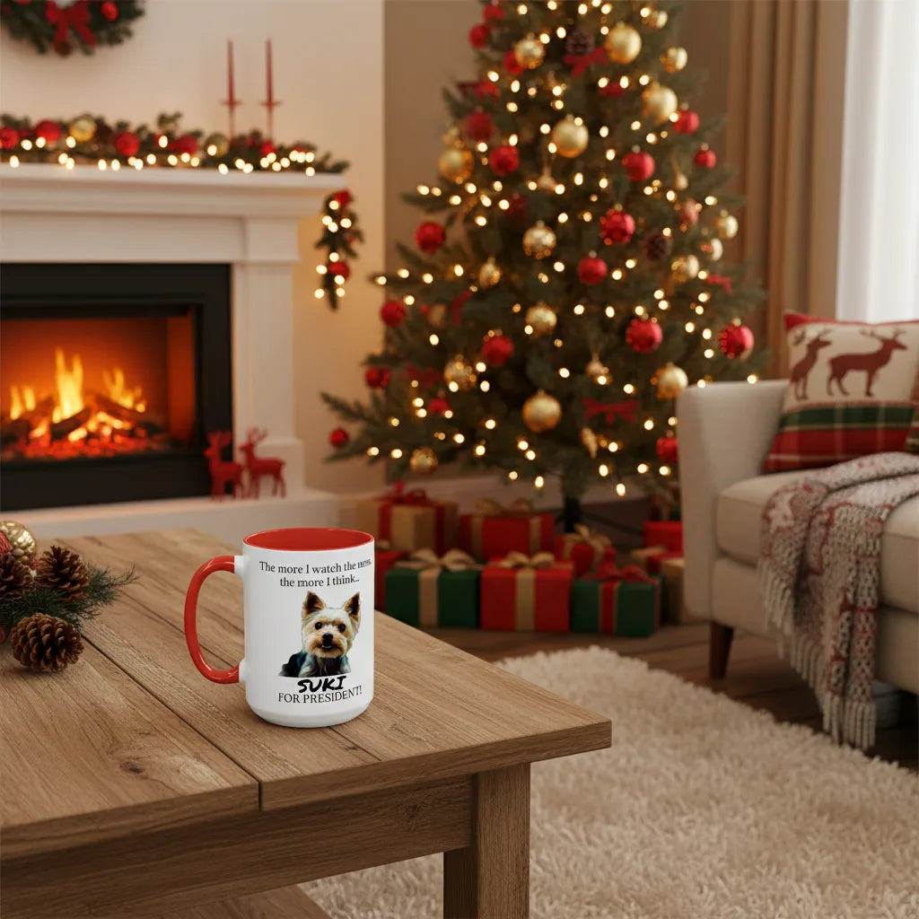 This ceramic accent mug brings quiet humor and heart to everyday sips. A photo of a soulful dog and the line “The more time I spend with people… The more I want to go home to DONNY!” creates a warm, relatable moment for anyone who’d rather be with their pet. The glossy white exterior contrasts with a colored interior and handle for a pop of personality. Sturdy C-shaped handle and bright, long-lasting print make it an easy companion for morning coffee, late-night tea, or a cozy afternoon by the window. It’s made to feel familiar — like a friend who understands the comfort of home and the joy of a loyal pup.